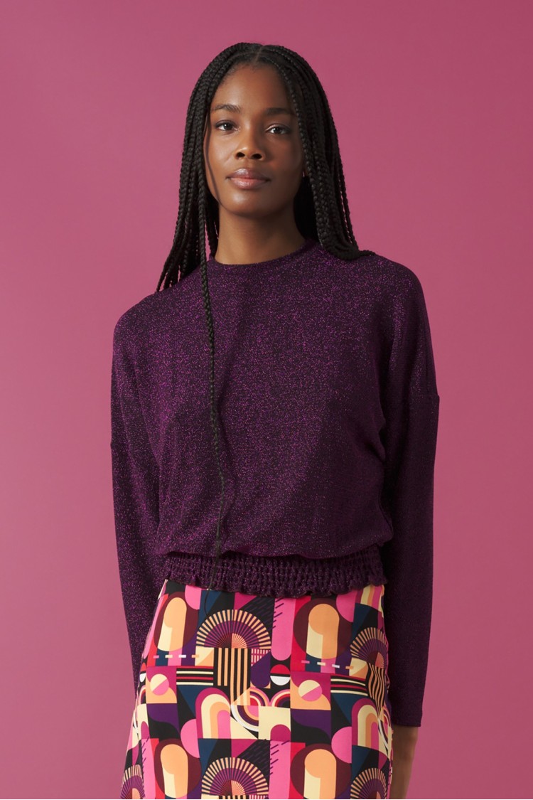 Top de cuello redondo y manga larga. Cuello, puños y cintura con elástico tipo panal de abeja. Cuello, puños y cintura con elástico tipo panal de abeja.